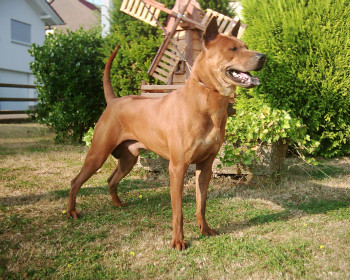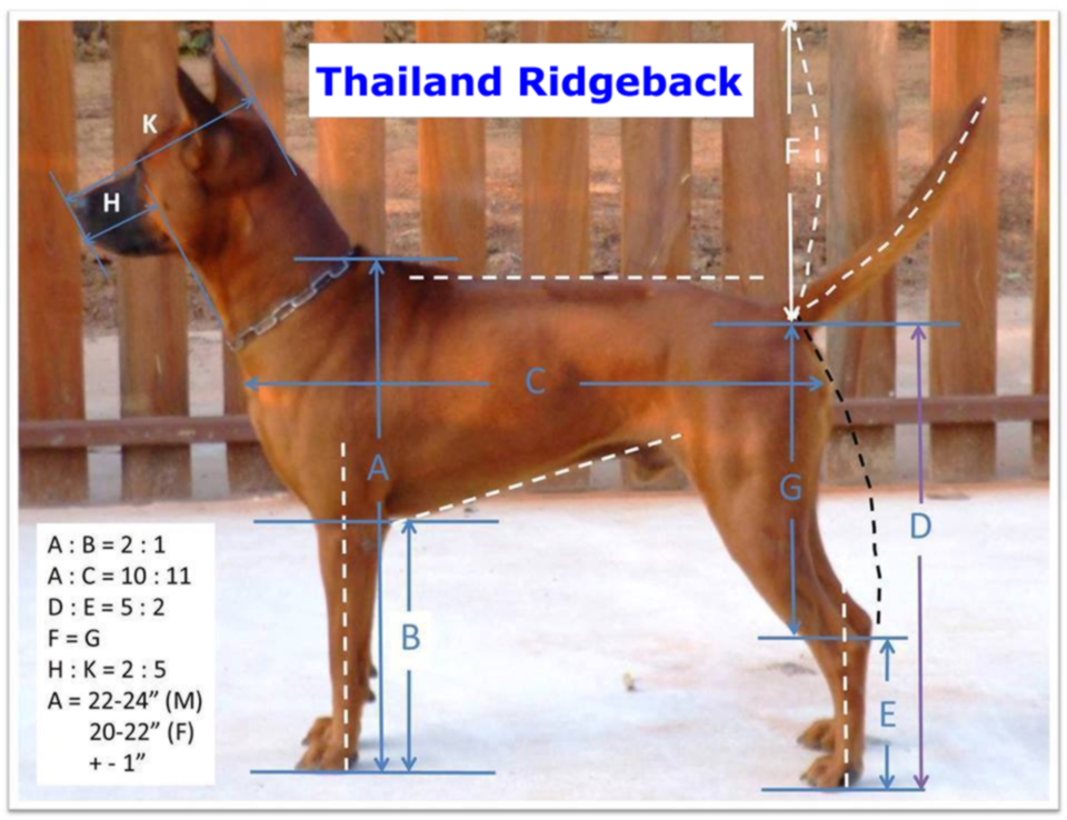 Mittelgroßer Hund mit kurzem Haar, das den Rücken entlang einen "Ridge" (Haarkamm) bildet. Seine Körperlänge übertrifft etwas die Widerristhöhe. Die Muskulatur ist gut entwickelt; sein Körperbau ermöglicht ihm jede Aktivität.