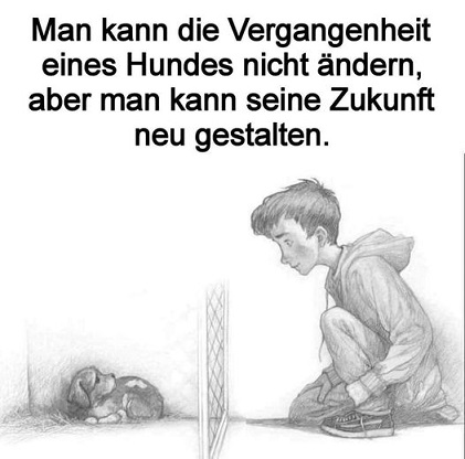 Am Morgen bist Du sehr früh aufgestanden und hast die Koffer gepackt. Du nahmst meine Leine, was war ich glücklich! Noch ein kleiner Spaziergang vor dem Urlaub - hurra ! Wir fuhren mit dem Wagen, und Du hast am Straßenrand angehalten, die Tür ging auf, und Du hast einen Stock geworfen. Ich lief und lief, bis ich den Stock gefunden und zwischen meinen Zähnen hatte. Aber als ich zurückkam, warst Du nicht mehr da ! In Panik bin ich in alle Richtungen gelaufen, um Dich zu finden, aber vergebens. Ich wurde immer schwächer von Tag zu Tag. Ein fremder Mann kam, legt mir ein Halsband um und nahm mich mit. Bald befand ich mich in einem Käfig und wartete dort auf Deine Rückkehr. Aber Du bist nicht gekommen. Dann wurde der Käfig geöffnet. Nein Du warst es nicht - es war der Mann, der mich gefunden hat. Er brachte mich in einen Raum- es roch nach Tod. Meine Stunde war gekommen. Geliebtes Herrchen, ich will,daß Du weißt, daß ich mich trotz des Leidens, das Du mir angetan hast, noch stets an Dein Bild erinnere.